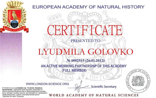 Член израильской Ассоциации биоэнергологов «Энергоинформатика».